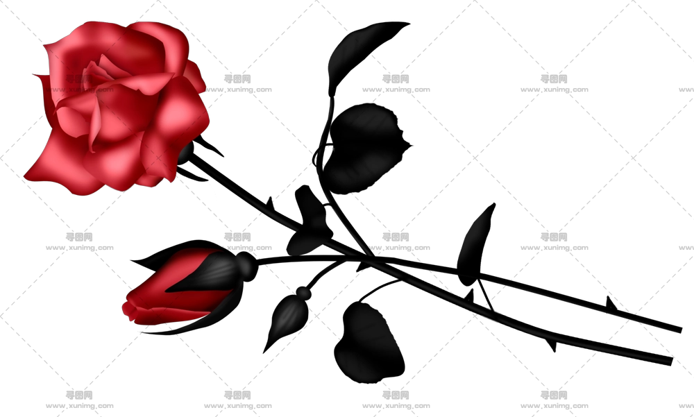 黑茎红玫瑰插画PNG免抠图预览图