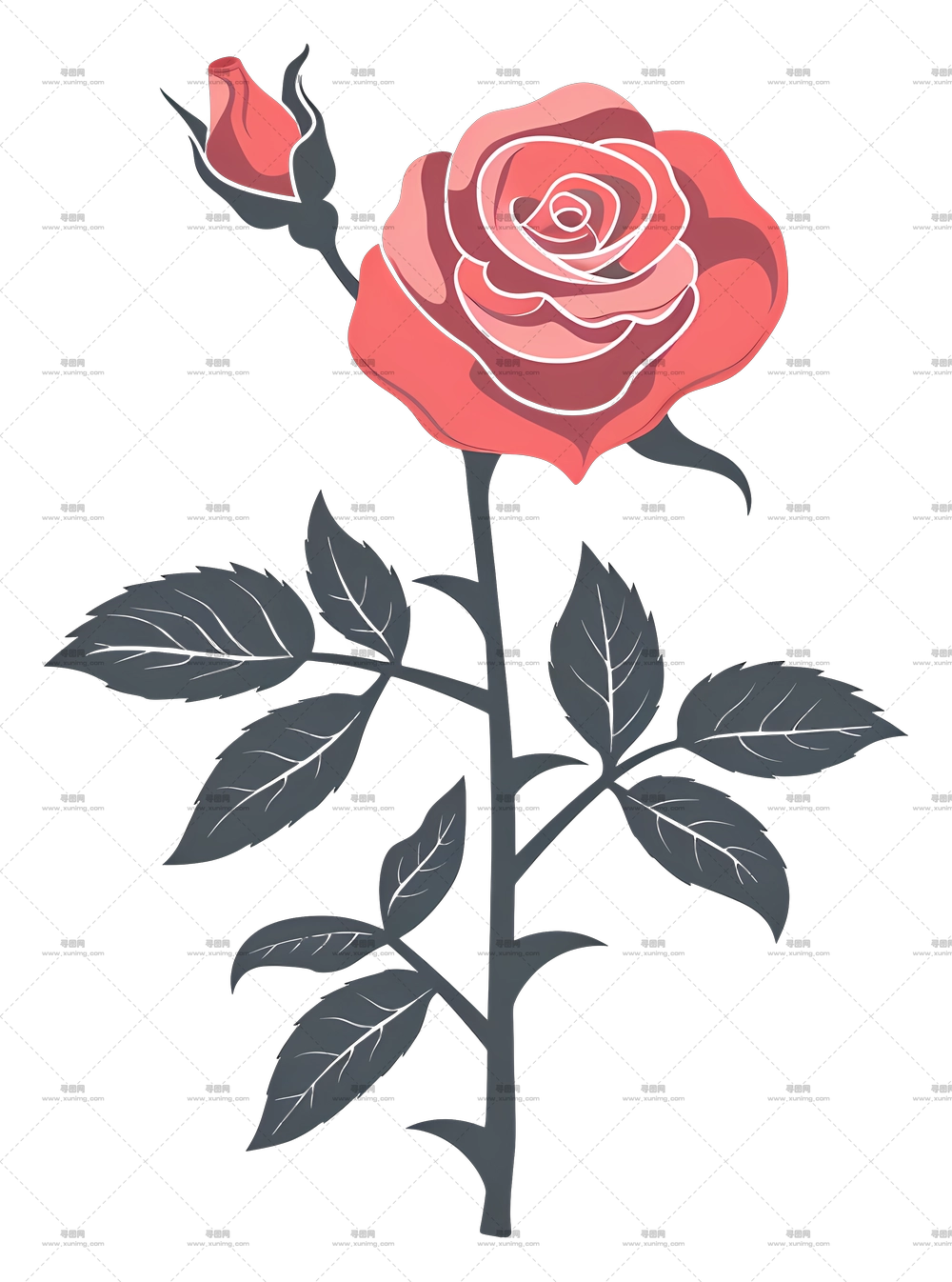 绿叶优雅红玫瑰插画PNG免抠图预览图