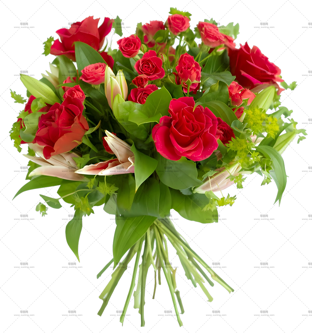 绿叶红玫瑰优雅花束PNG免抠图预览图