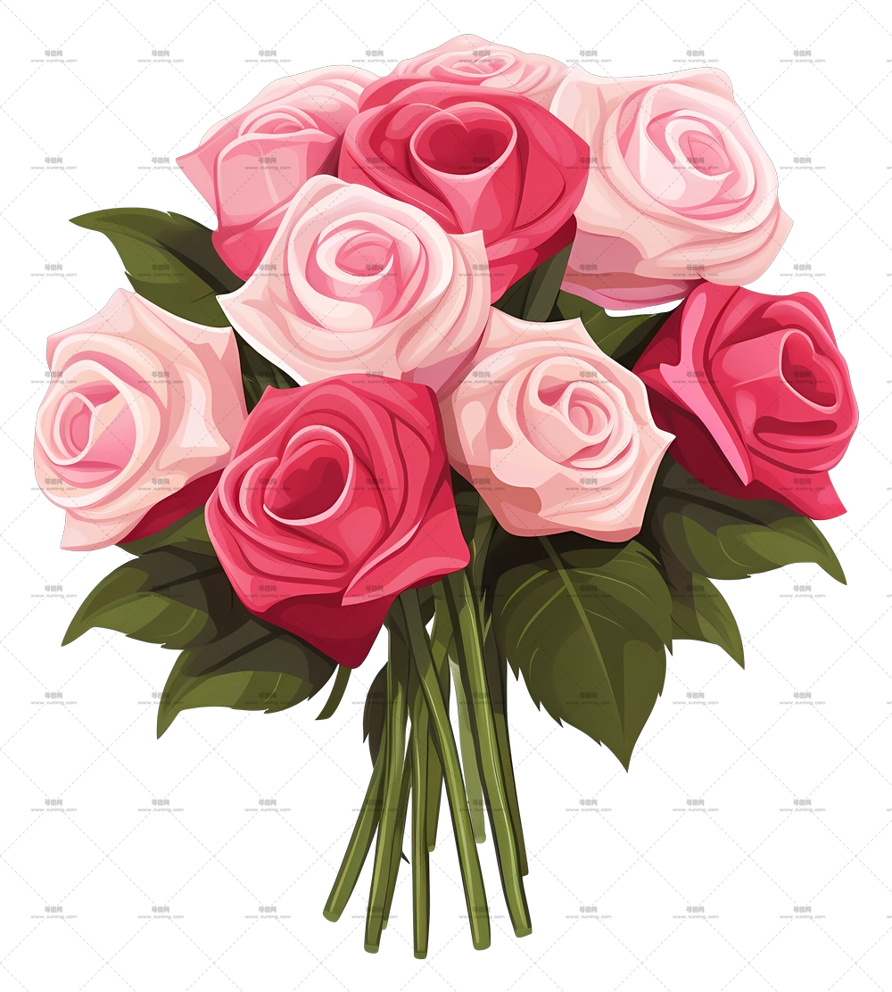 粉色花束 – 精美粉色花朵花束配丝带PNG免抠图