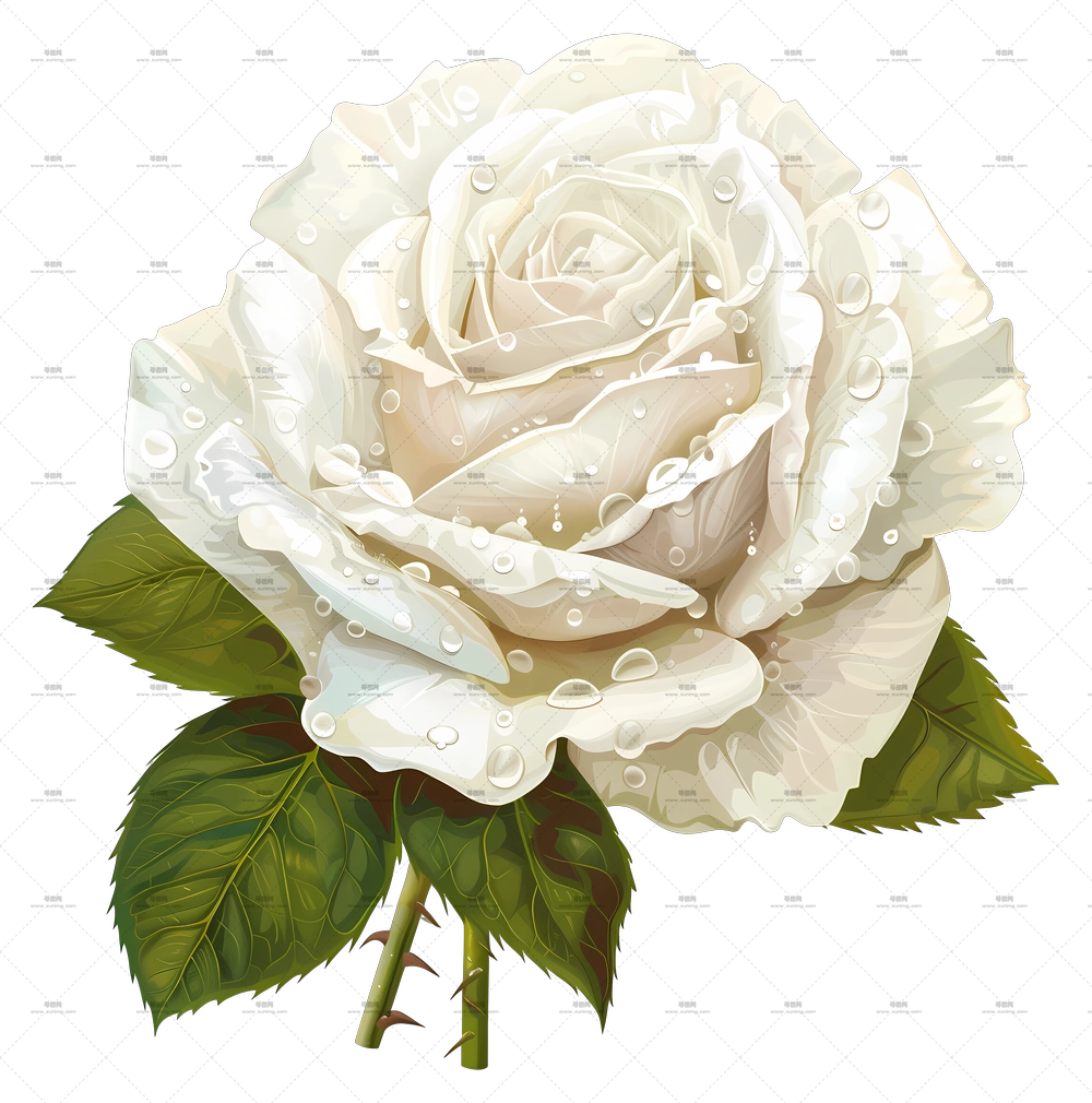 带水滴的白玫瑰PNG免抠图预览图