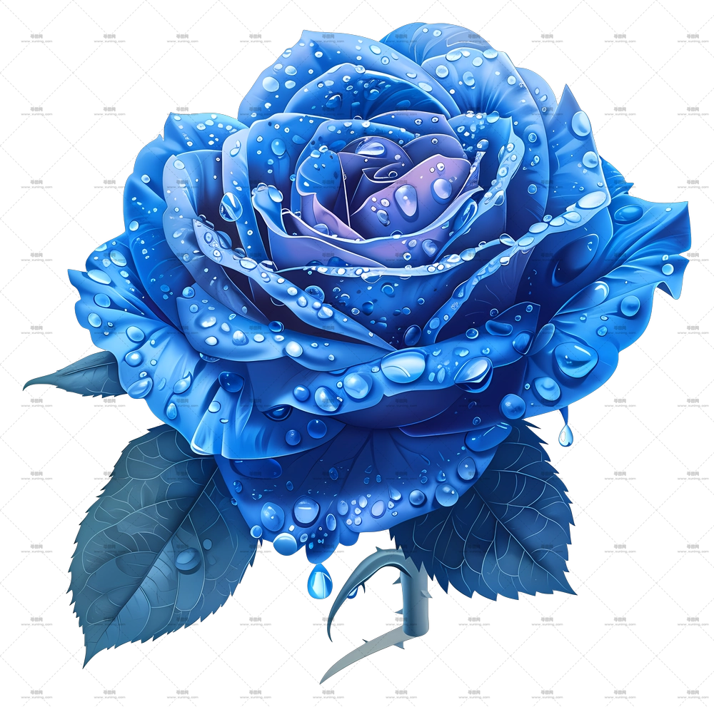 带露珠的美丽蓝玫瑰PNG免抠图预览图