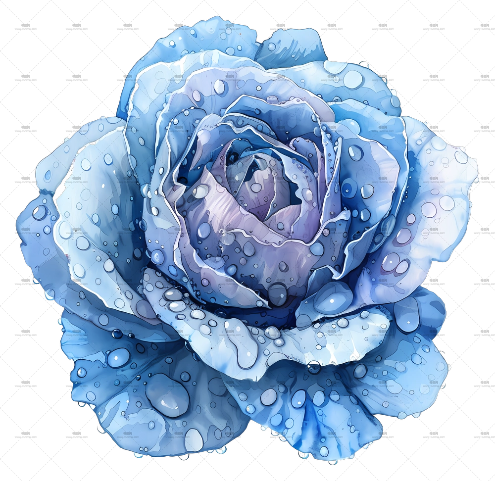带水滴的美丽蓝玫瑰PNG免抠图预览图