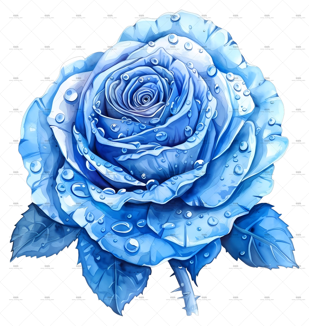 带露珠水滴的蓝玫瑰PNG免抠图预览图