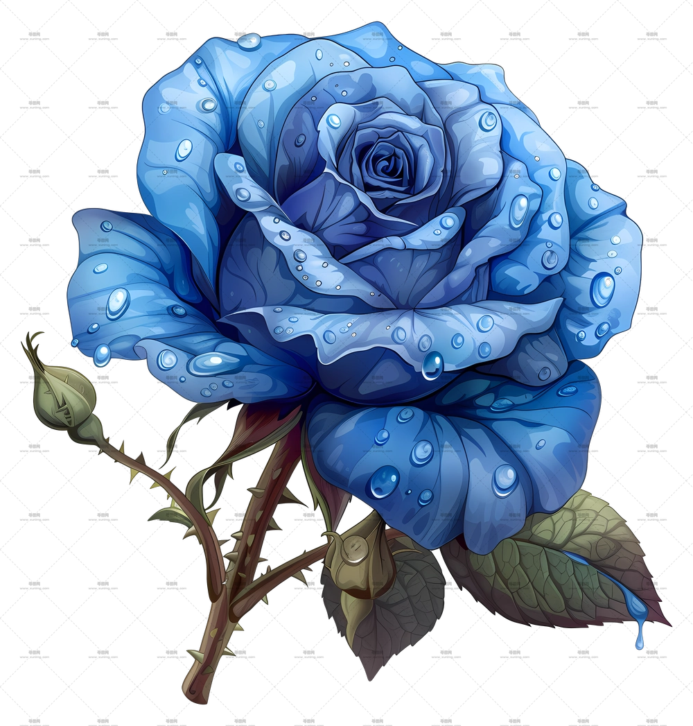 绿叶粗犷红玫瑰绘画PNG免抠图