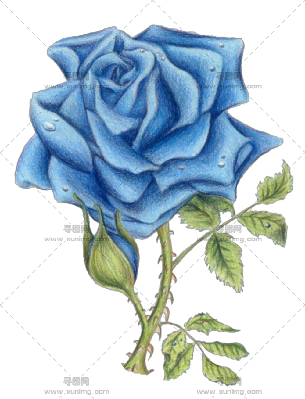美丽蓝玫瑰绘画PNG免抠图预览图