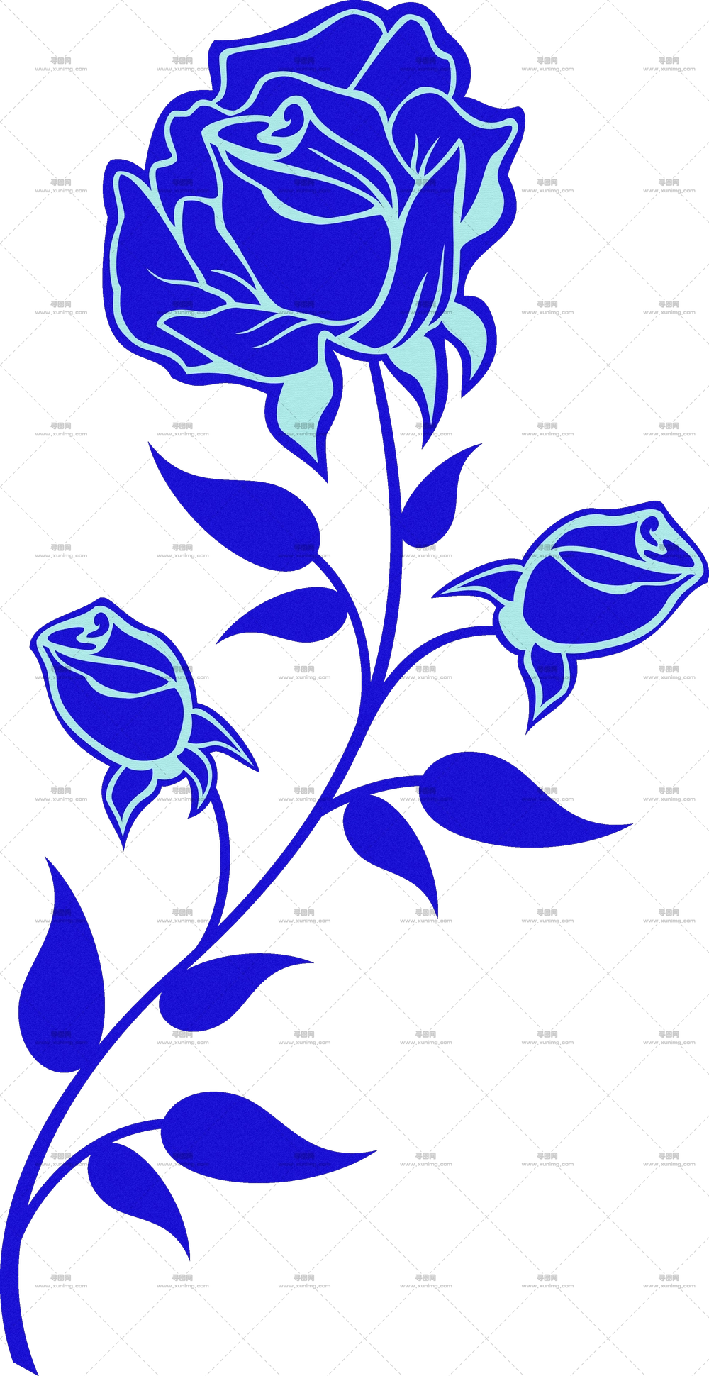垂直蓝玫瑰边框插画PNG免抠图