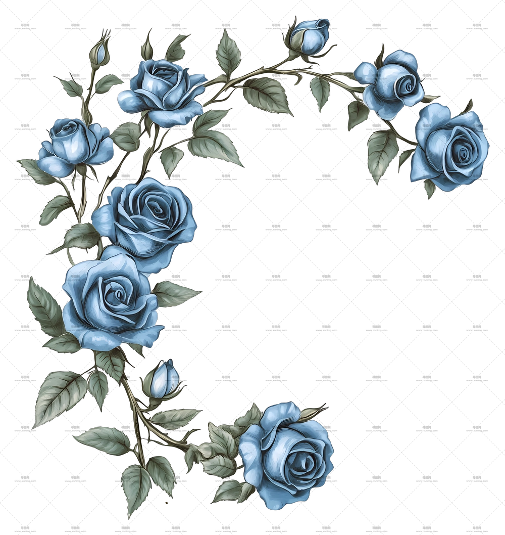 蓝玫瑰花卉角落设计PNG免抠图预览图