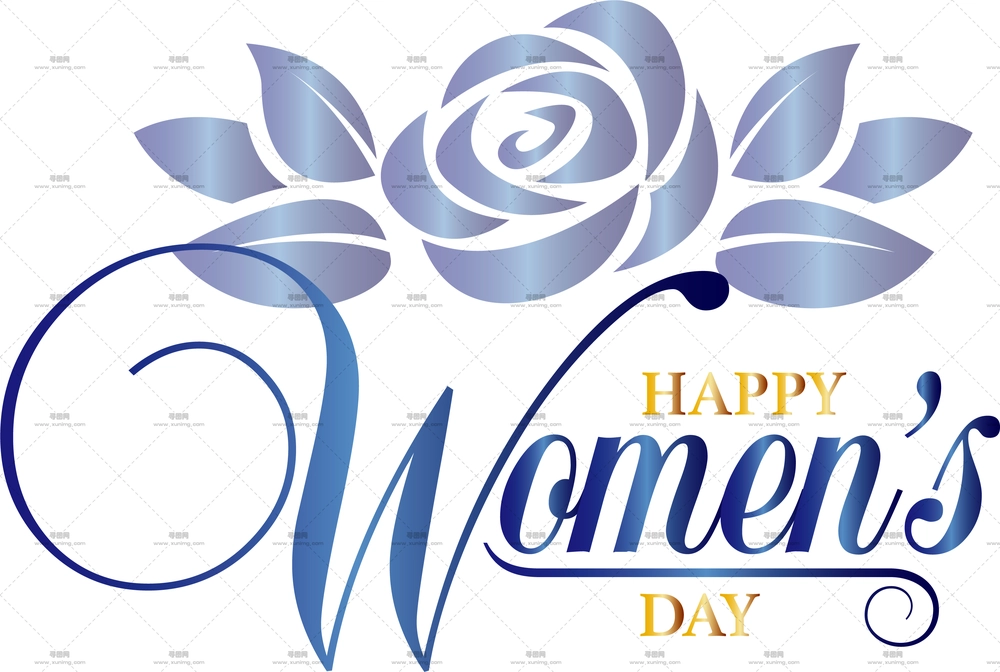 带蓝玫瑰设计的三八妇女节卡片PNG免抠图预览图