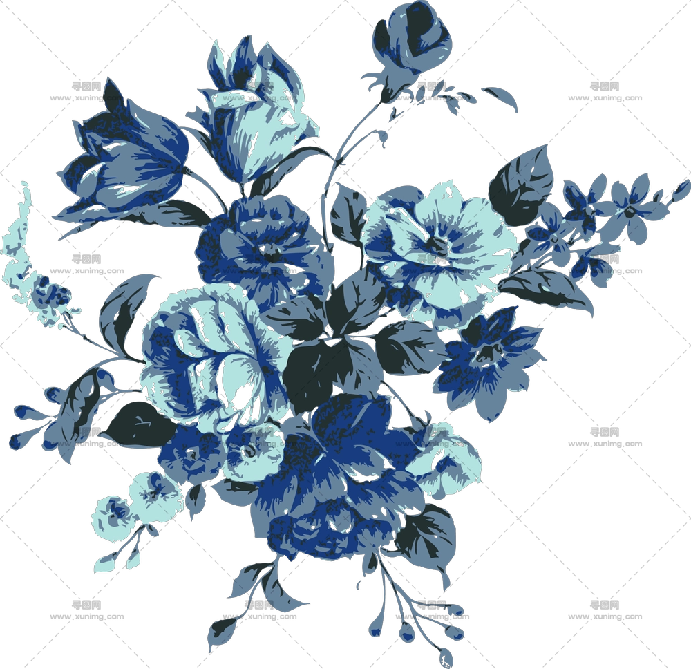 艺术装饰用蓝花卉插画PNG免抠图预览图