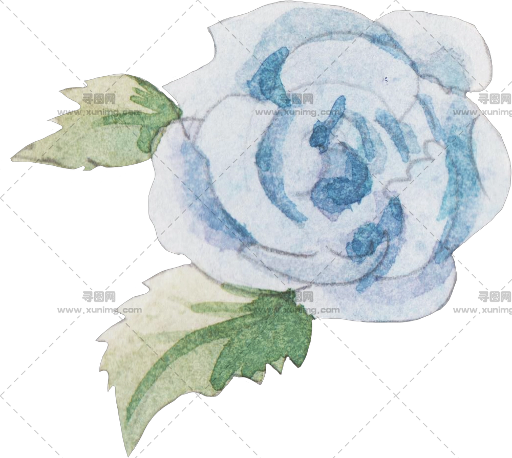 带叶子的水彩蓝玫瑰PNG免抠图预览图