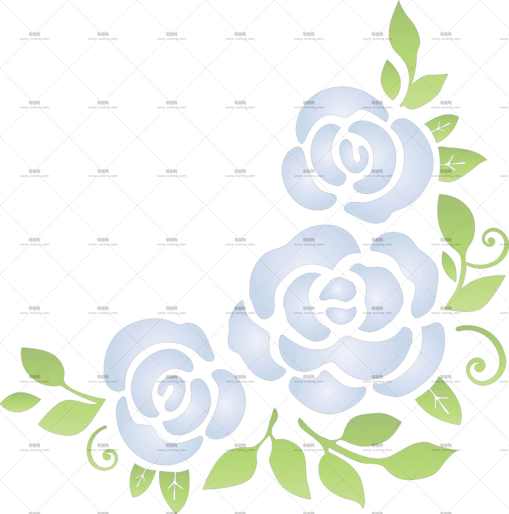 带绿叶的优雅蓝玫瑰插画PNG免抠图预览图