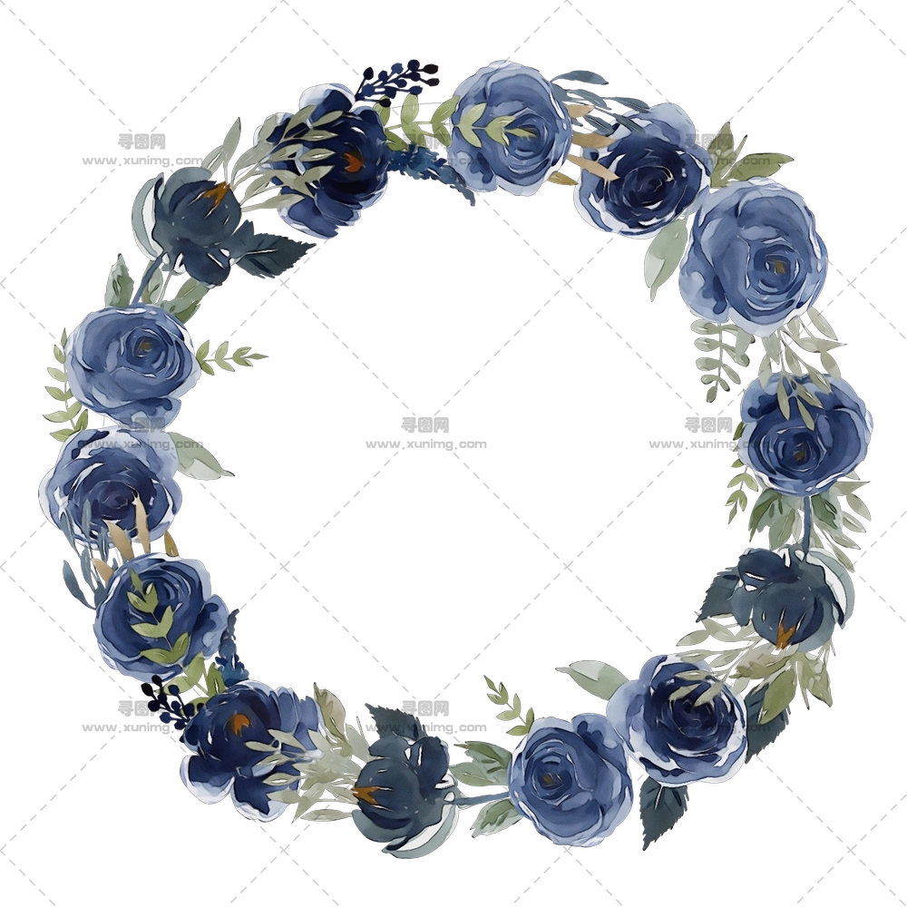 蓝玫瑰花卉花环框架PNG免抠图预览图