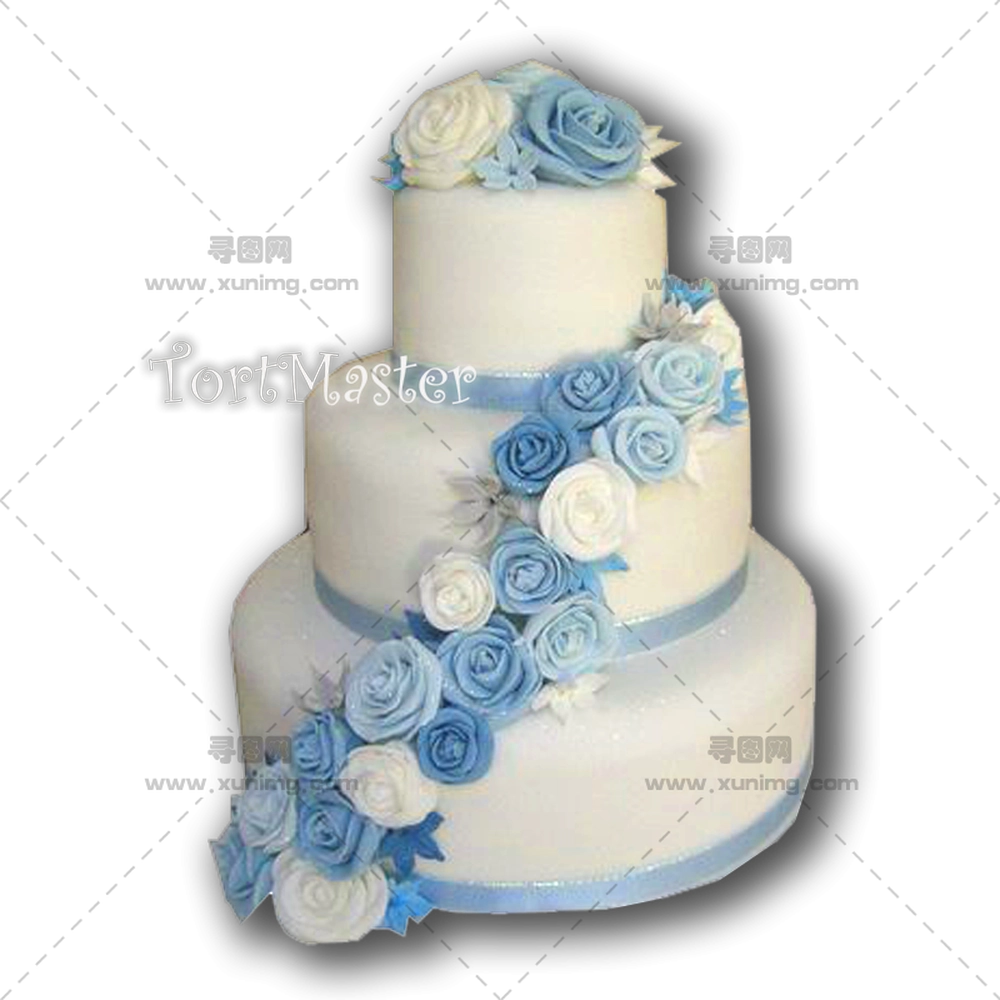 带蓝玫瑰装饰的优雅婚礼蛋糕PNG免抠图预览图