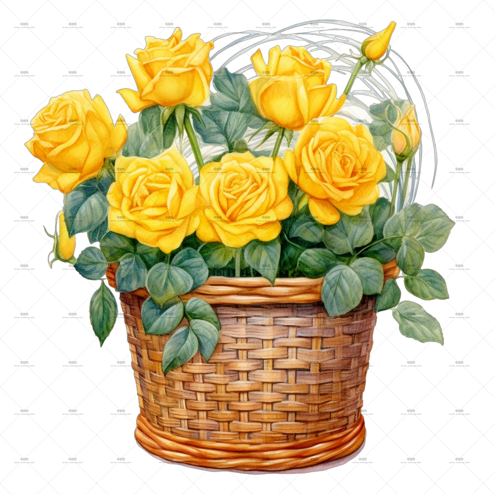 编织篮子中的黄玫瑰PNG免抠图预览图