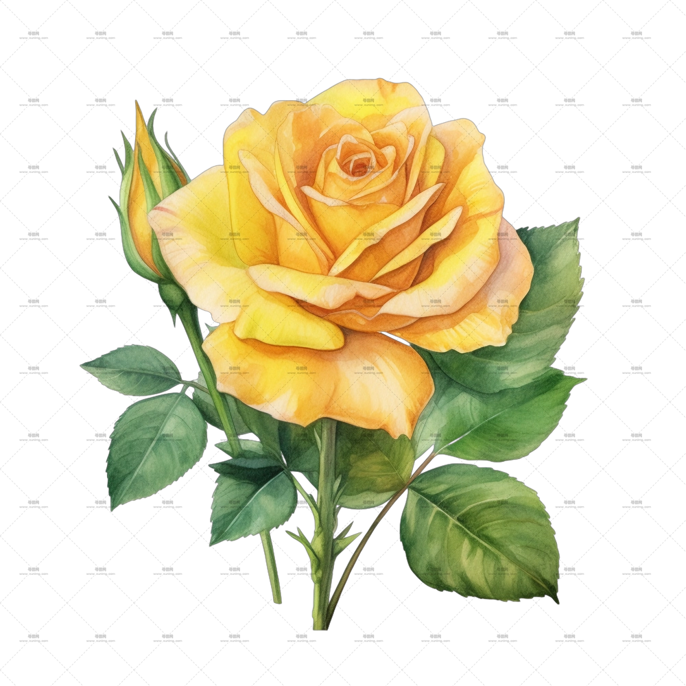 带花蕾的黄玫瑰插画PNG免抠图预览图