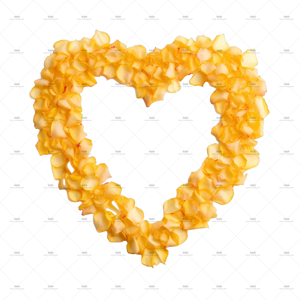 创意艺术中黄花瓣制成的心形PNG免抠图预览图