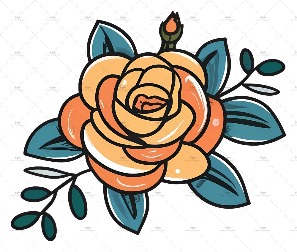 带叶子的卡通橙玫瑰插画PNG免抠图预览图