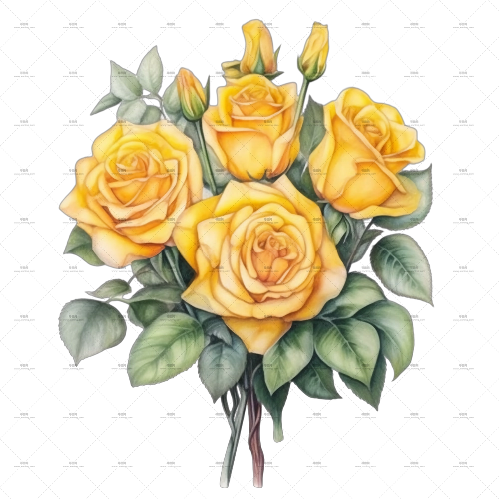 带花蕾桃粉色玫瑰花插画PNG免抠图