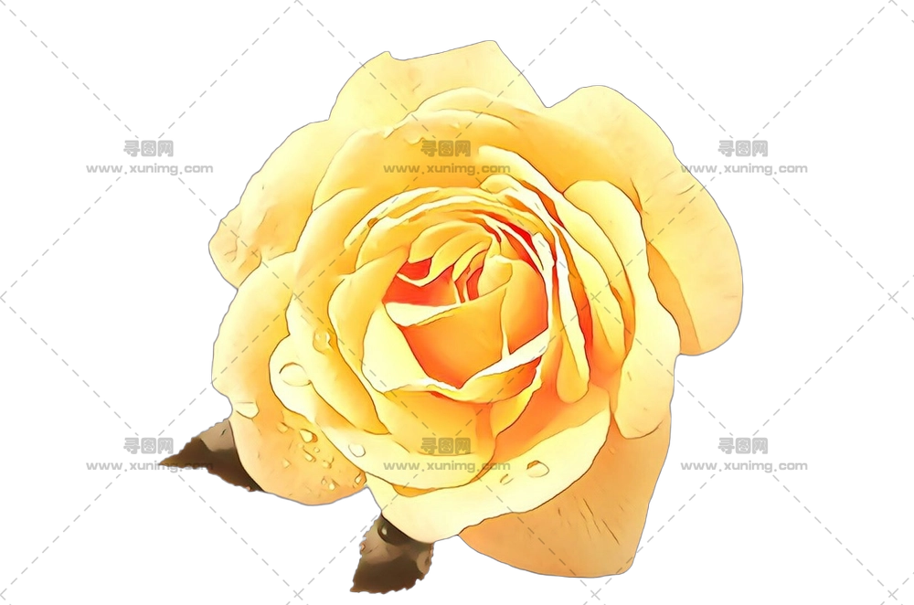 带露珠的黄玫瑰插画PNG免抠图预览图