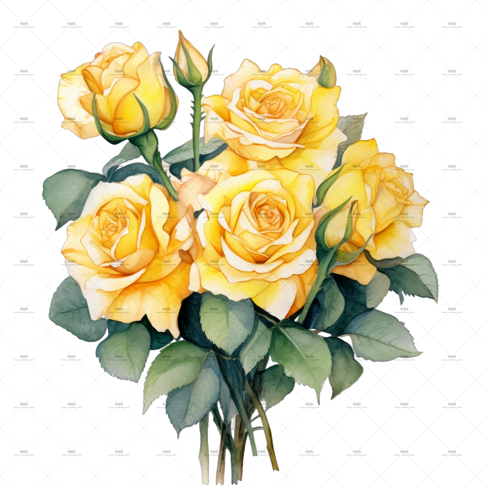 带茂盛绿叶的黄玫瑰PNG免抠图预览图