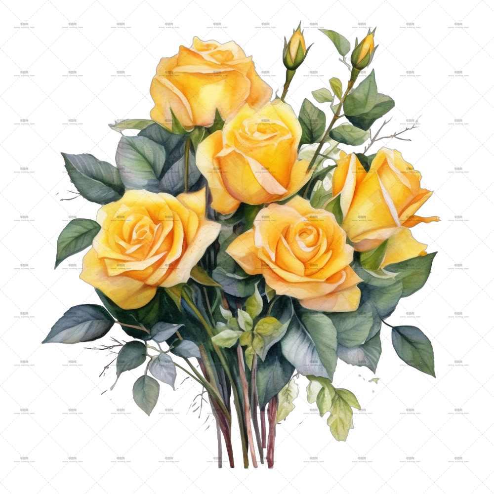 优雅黄玫瑰花束插画PNG免抠图预览图