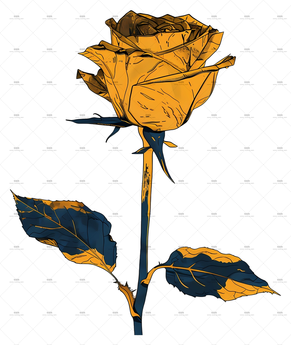 带蓝叶的黄玫瑰PNG免抠图预览图