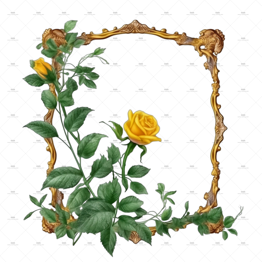 带华丽框架的黄玫瑰PNG免抠图预览图