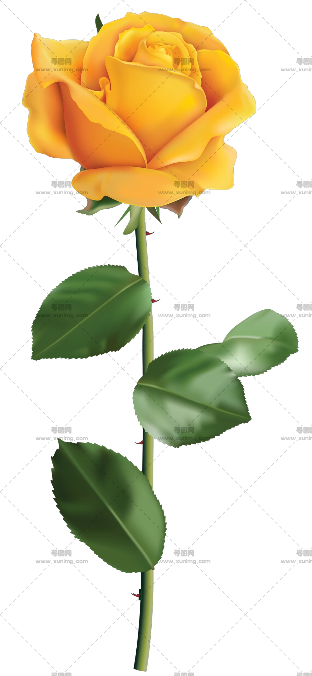 带茎叶的美丽黄玫瑰PNG免抠图预览图
