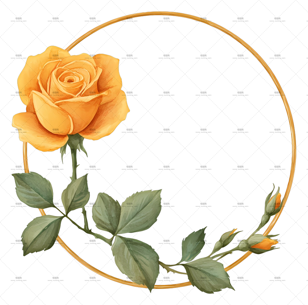 带圆形框架的黄玫瑰PNG免抠图预览图