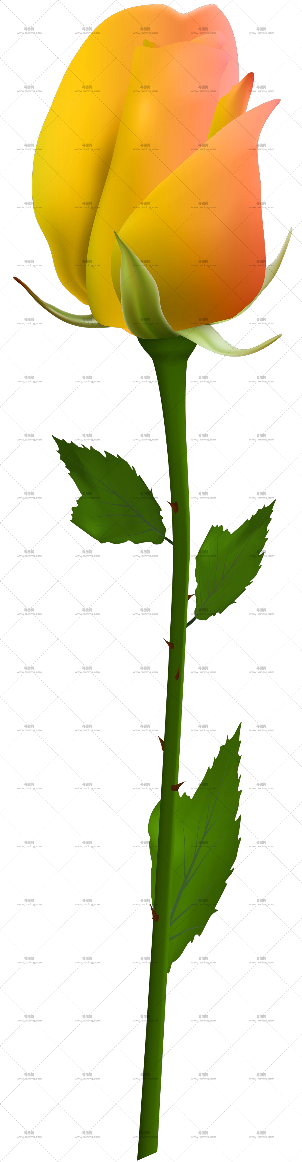 优雅细节长茎红玫瑰PNG免抠图