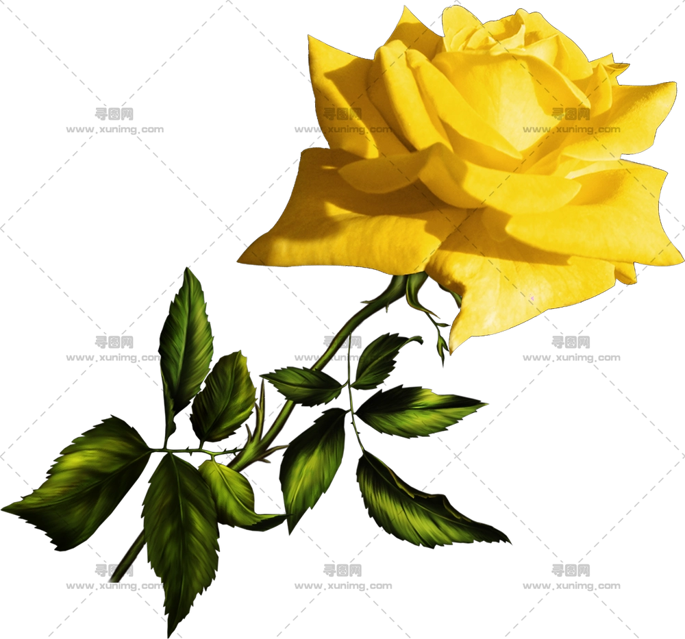 带叶子的美丽黄玫瑰PNG免抠图预览图