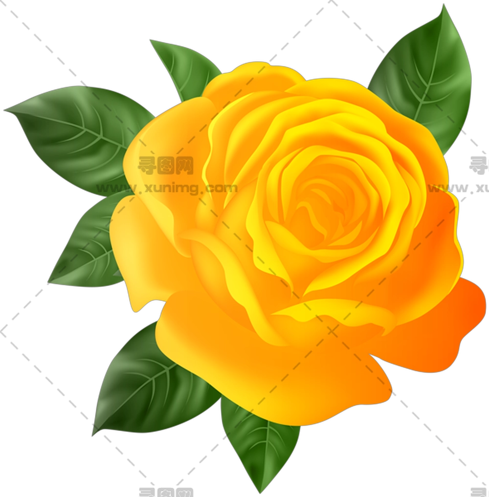 带叶子的黄玫瑰插画PNG免抠图预览图