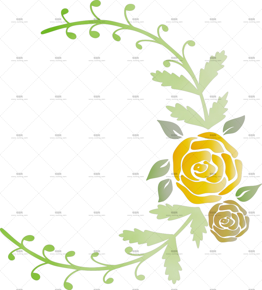 带叶环的黄玫瑰装饰PNG免抠图预览图