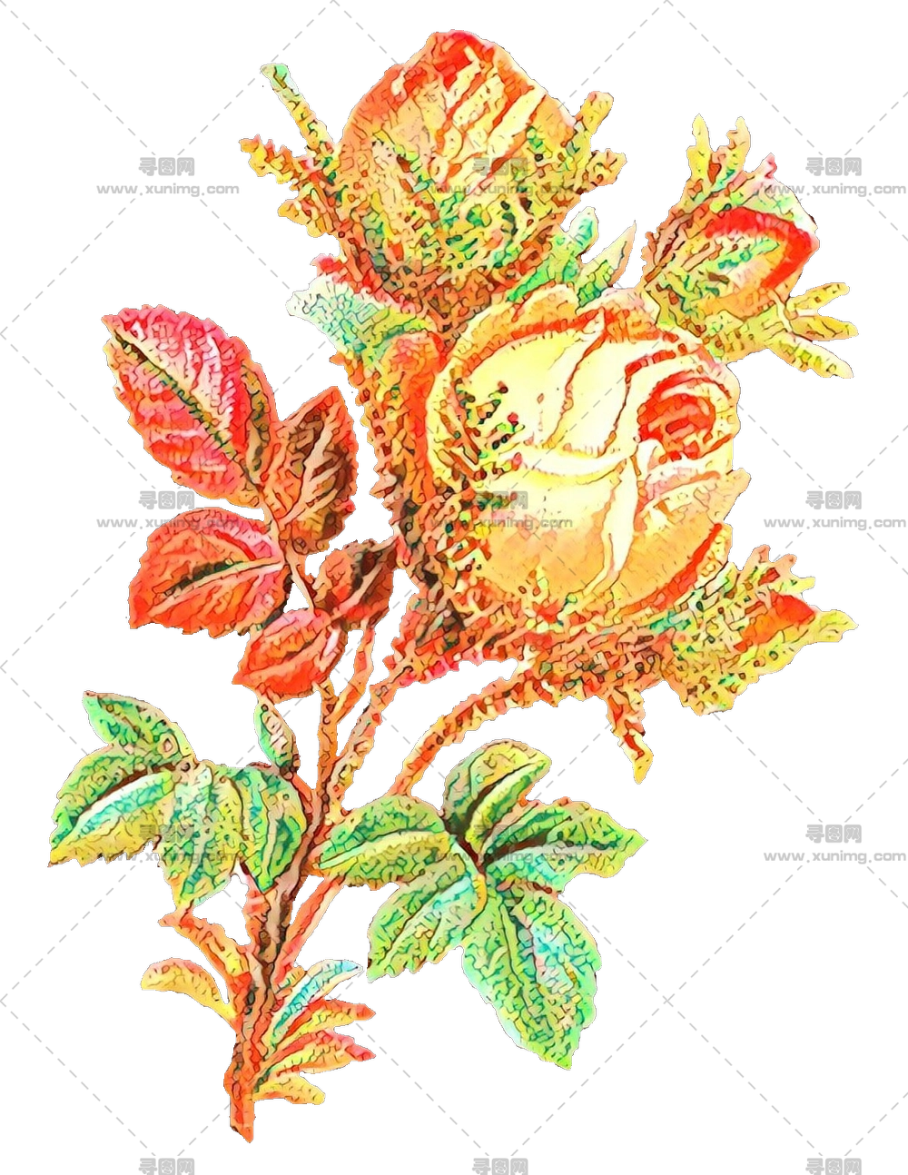 黄玫瑰植物插画PNG免抠图预览图