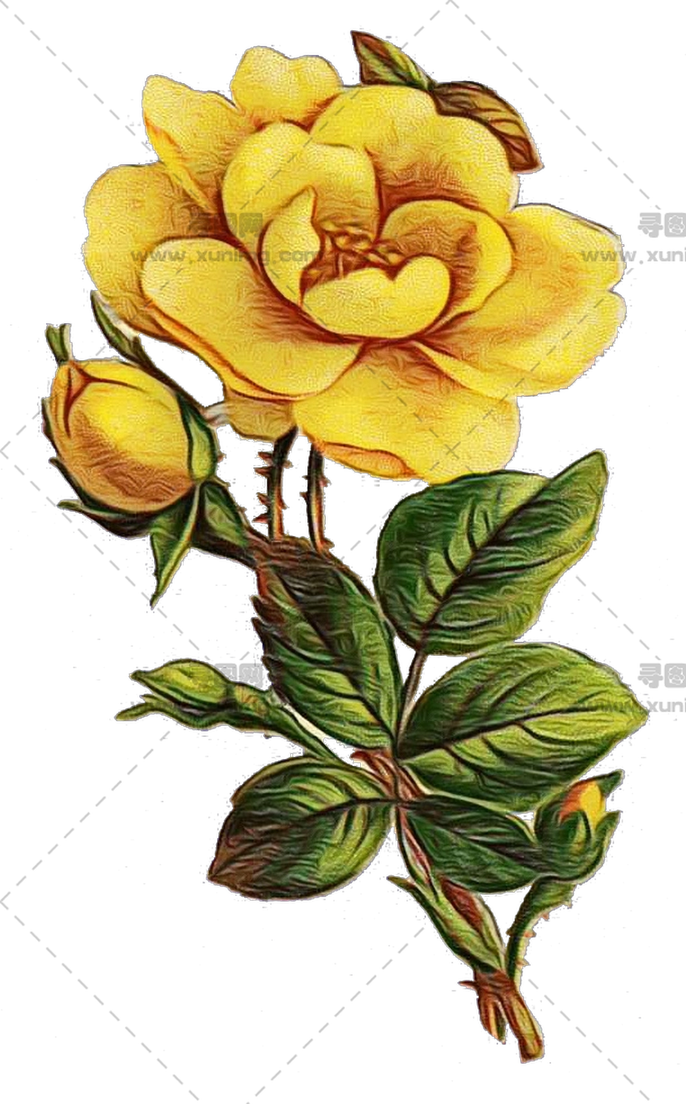 带优雅设计的黄玫瑰插画PNG免抠图预览图