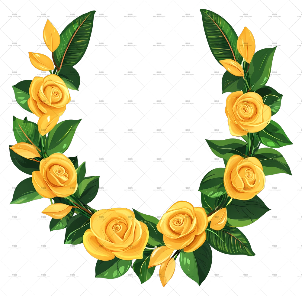 带绿叶的黄玫瑰花环PNG免抠图预览图