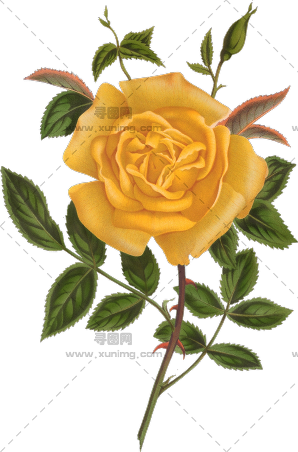 带叶子的黄玫瑰插画PNG免抠图预览图