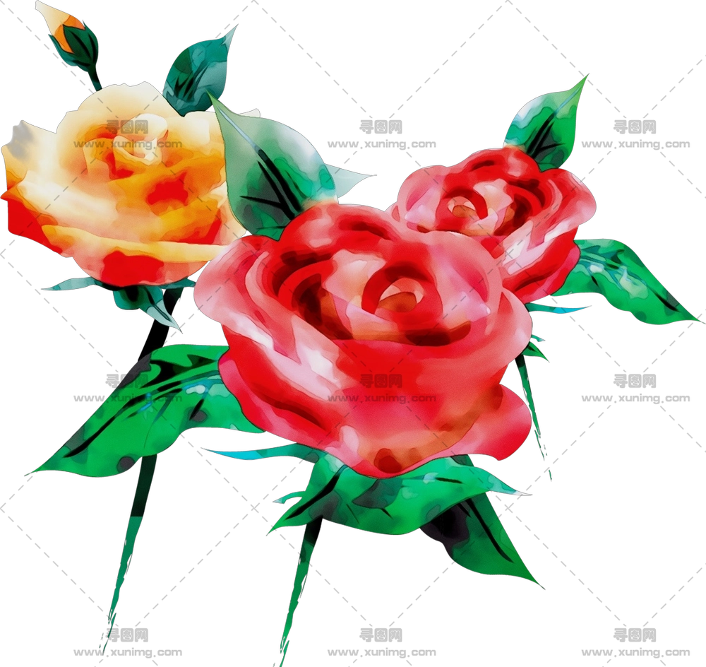 新鲜红色玫瑰花和茂密绿叶PNG免抠图