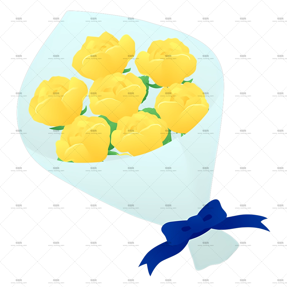蓝丝带包装的黄玫瑰花束PNG免抠图预览图