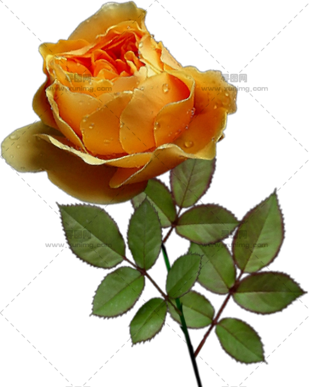 带露珠和绿叶的黄玫瑰PNG免抠图预览图