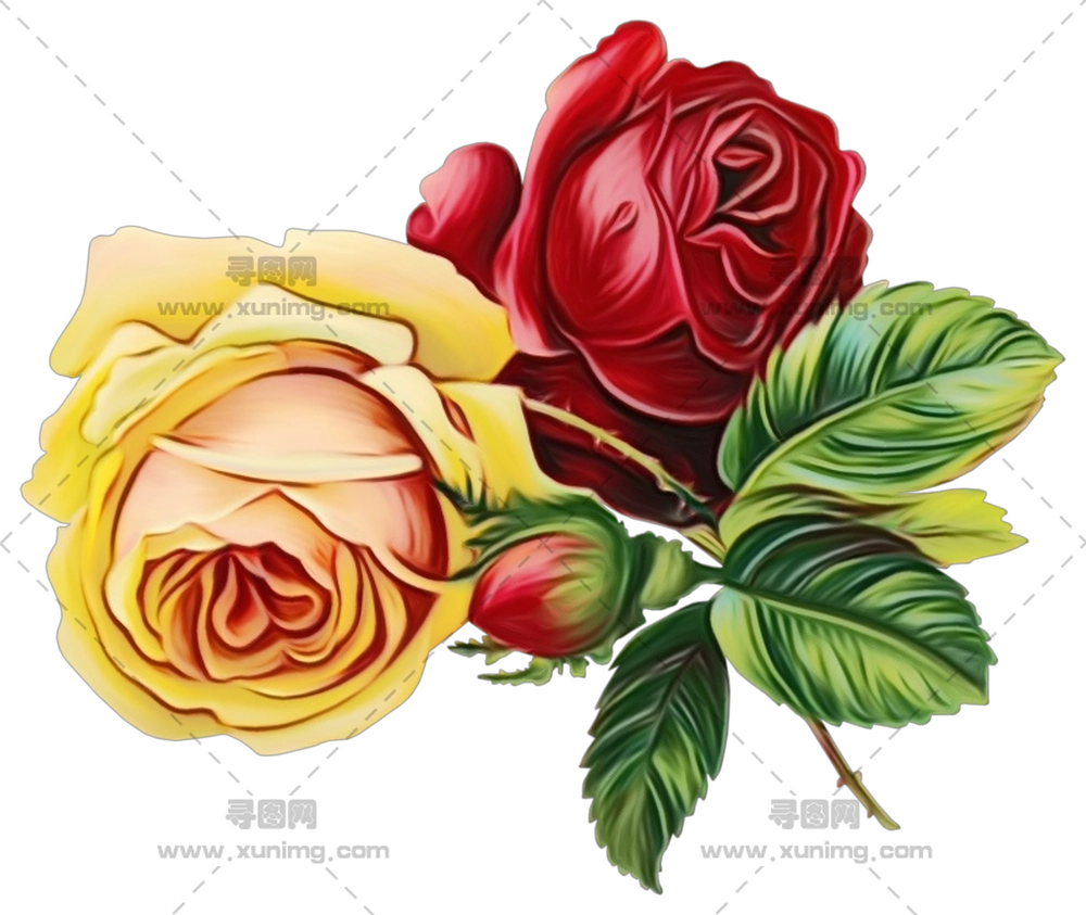 植物艺术的黄玫瑰插画PNG免抠图
