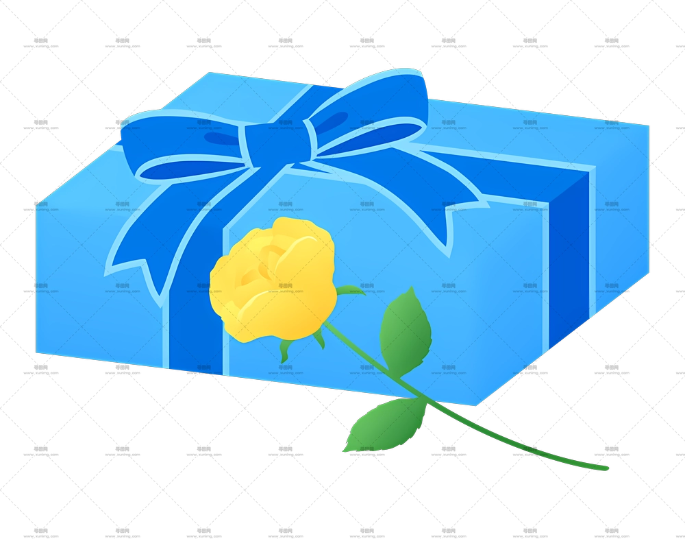 带黄玫瑰的蓝礼品盒PNG免抠图预览图