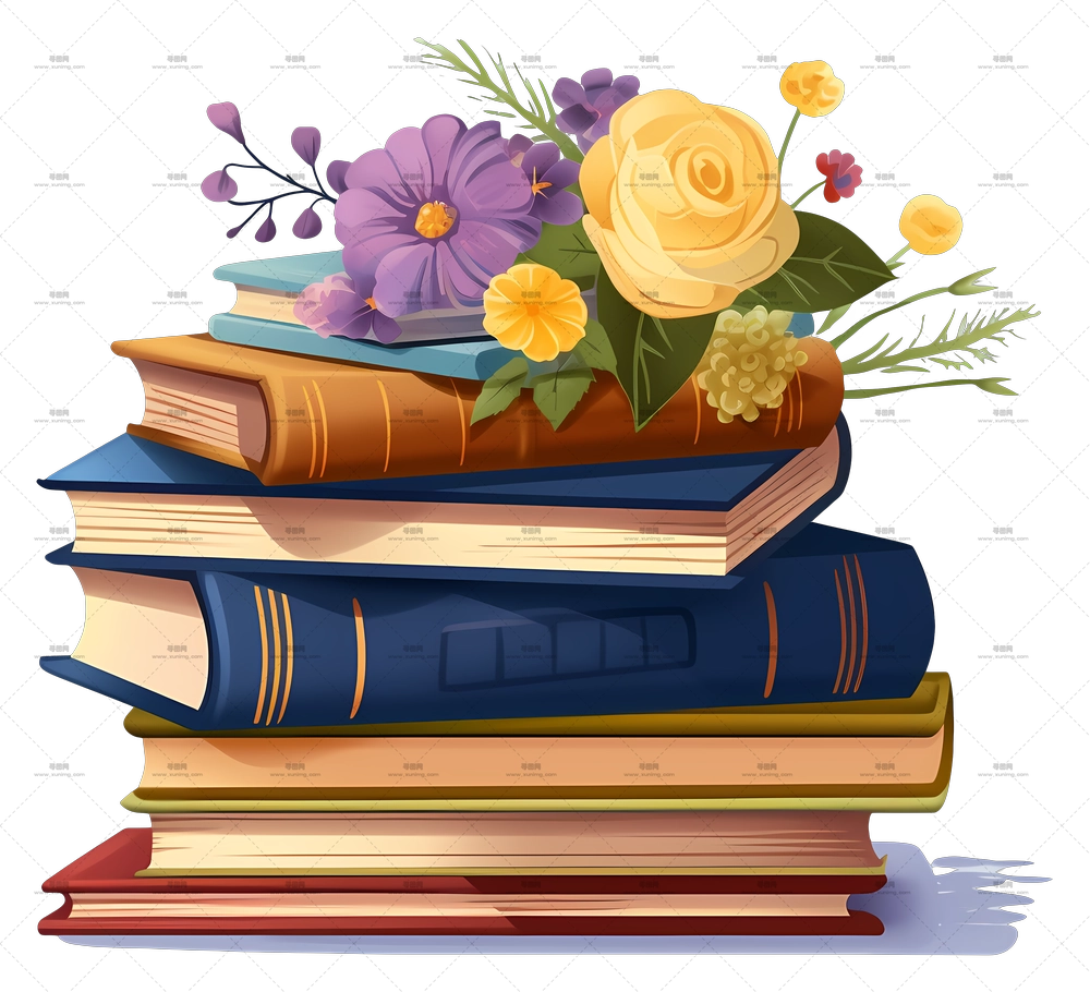 带花卉装饰的美丽书堆PNG免抠图预览图