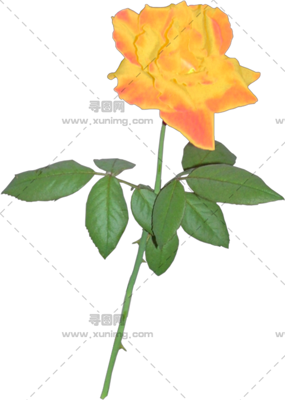 带绿叶的黄橙玫瑰PNG免抠图预览图