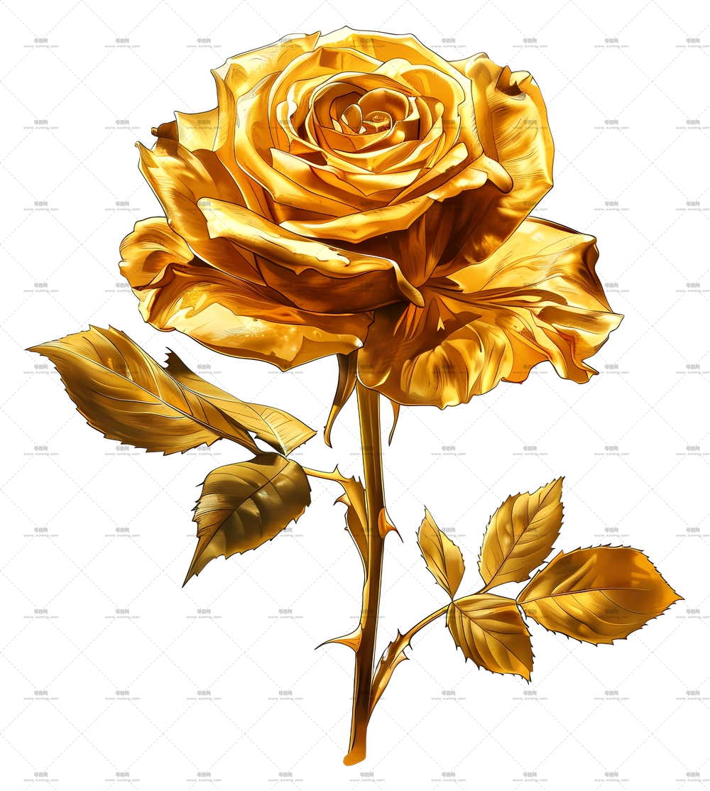 带惊人细节的金玫瑰插画PNG免抠图预览图
