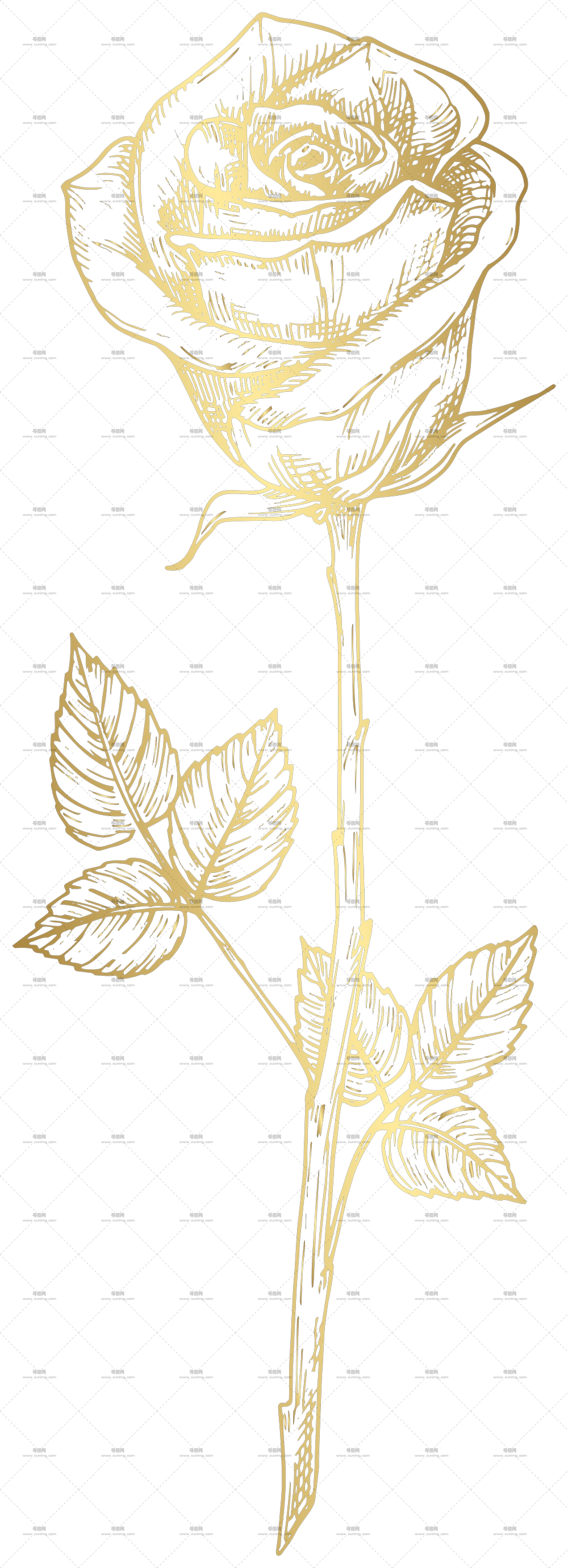 带金色装饰和叶子细节的白玫瑰PNG免抠图