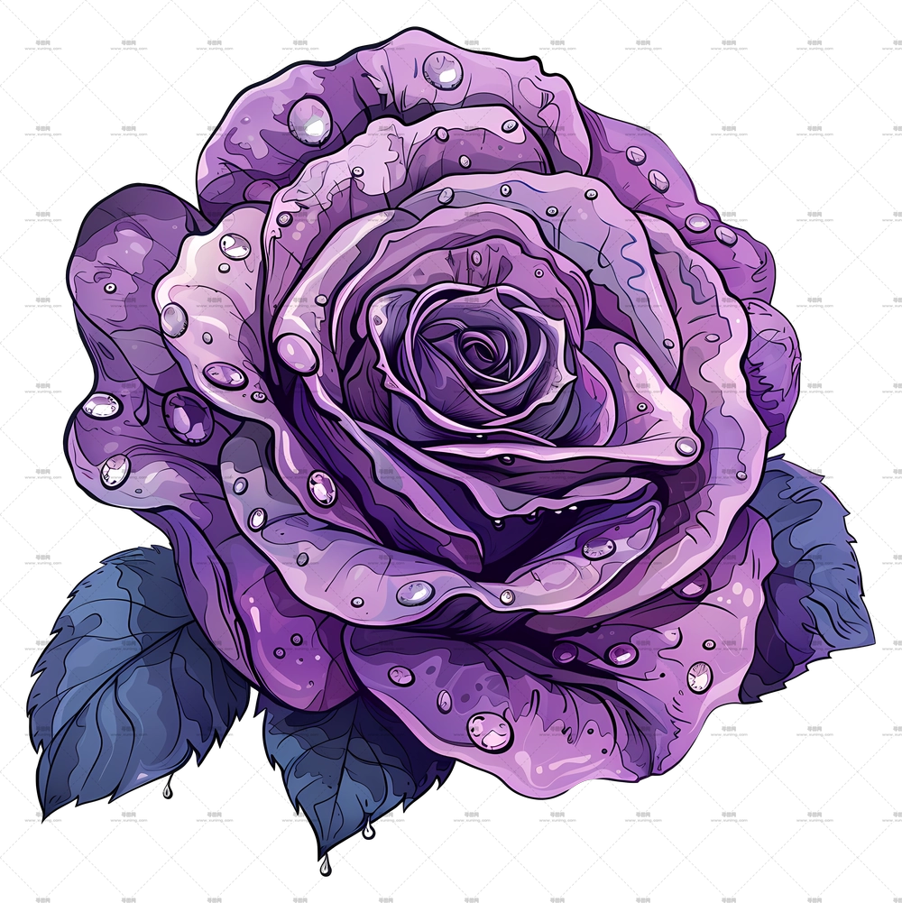 带水滴的深色紫玫瑰特写PNG免抠图预览图