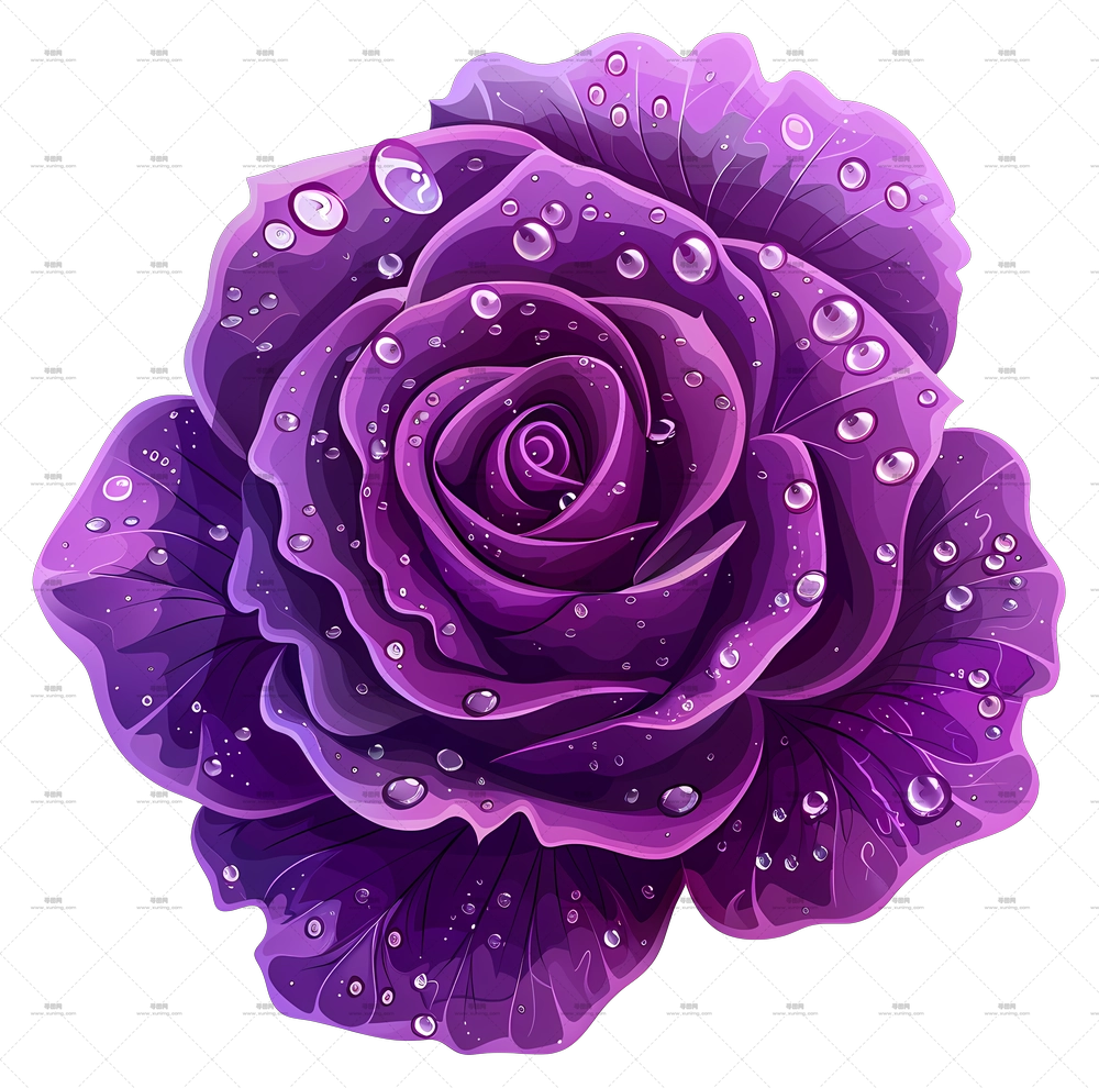 带露珠的紫玫瑰插画PNG免抠图预览图