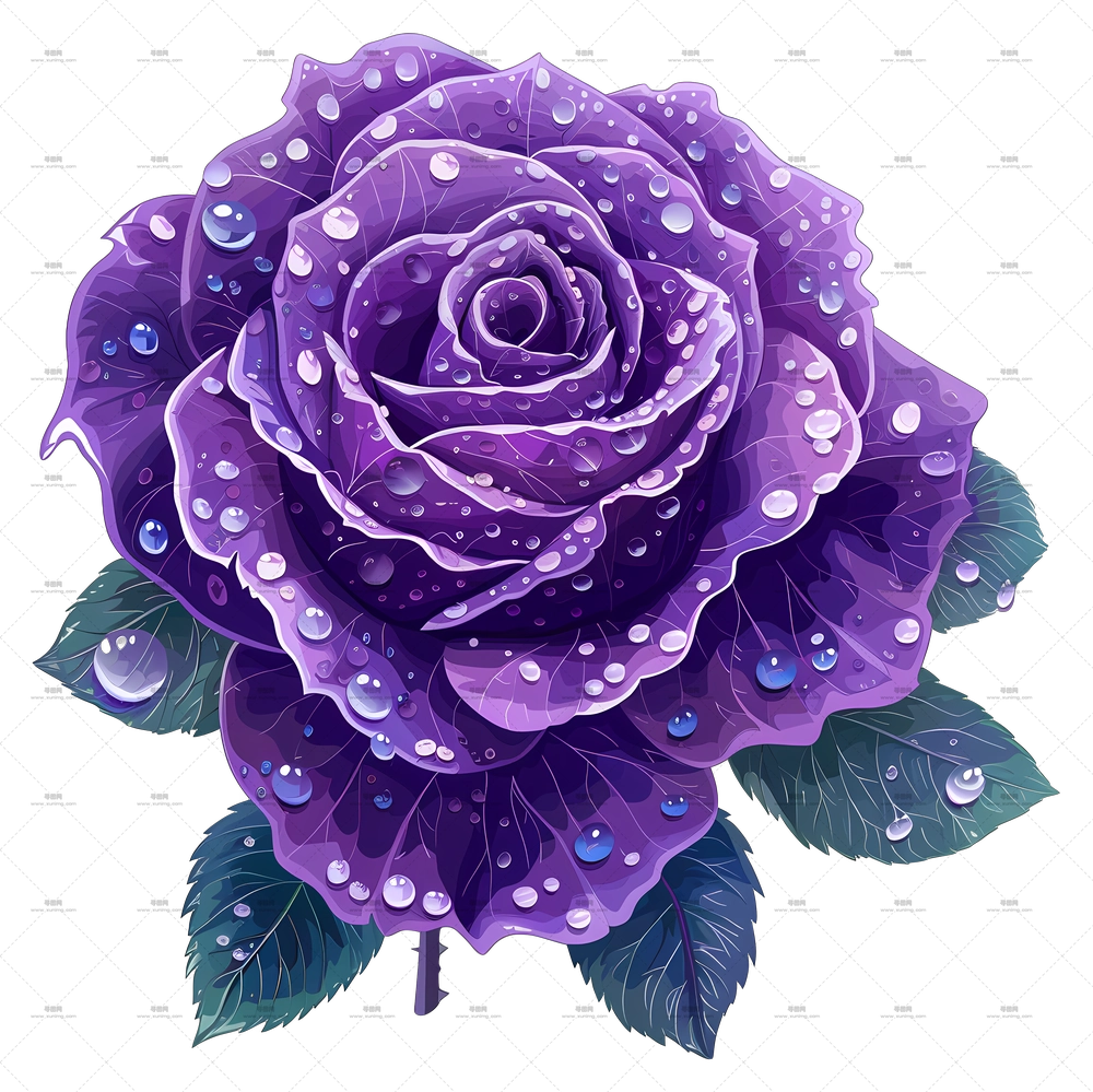 露珠红玫瑰插画PNG免抠图